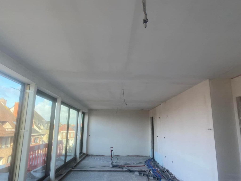 Nieuwbouwappartementen Tielt Bij deze 6 nieuwbouwappartementen stonden wij in voor het pleisteren van de muren, spuitplamuur op de plafonds, het uitwerken van de gordijnkasten,…