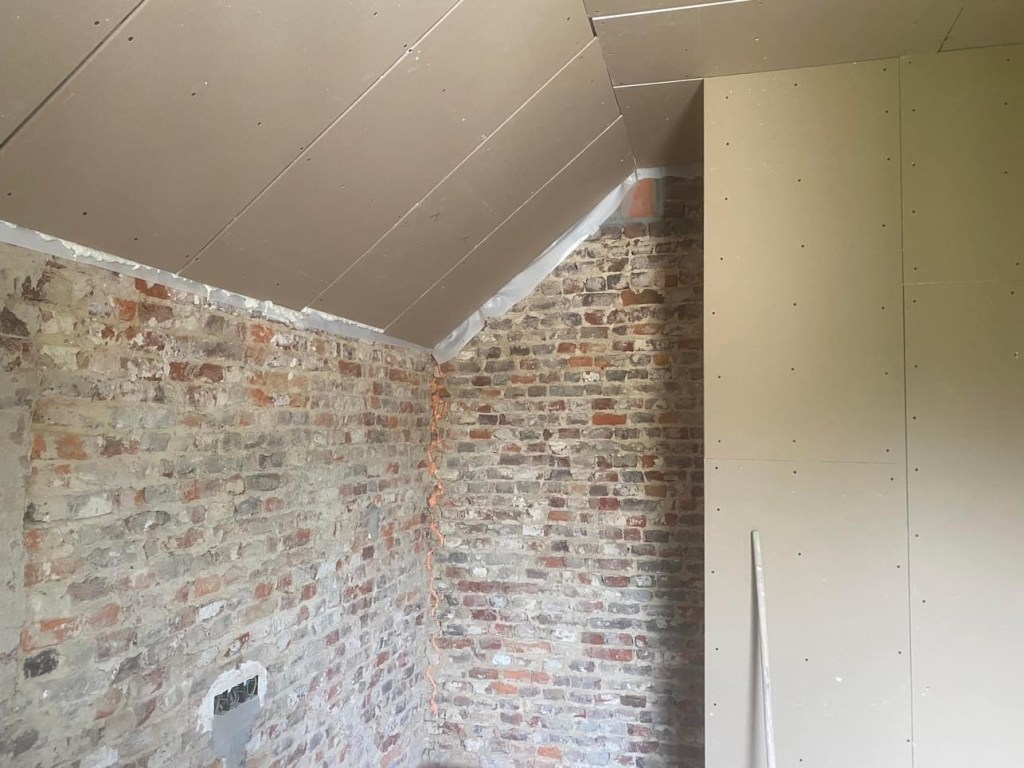 Renovatieproject Schuiferskapelle Bij dit renovatieproject kregen we de kans om er alles aan te doen om de woning terug te laten stralen. hier plaatsten we gyproc, en trokken alle kromme muren terug mooi strak.